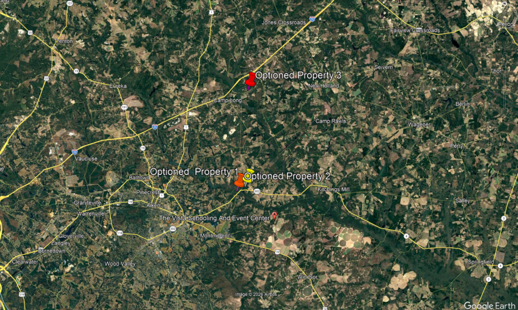 As of 4/24/2026 THREE properties have accepted option agreements in the eastern corridor. The option agreements were signed with a company registered as Aiken Energy Center LLC.