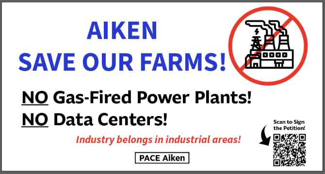 We, the undersigned residents, landowners, and supporters of Aiken County, strongly oppose the proposed gas-fired power plant and associated industrial development in our agricultural and equestrian community.